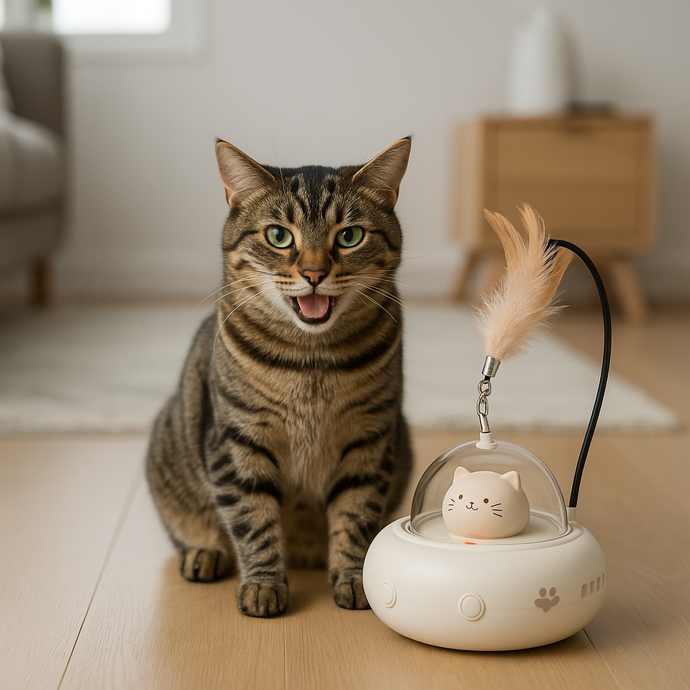 This automatic toy moves the light and the feather in an unpredictable way, imitating a real prey that activates your cat’s hunting instinct. Your cat runs, jumps, and plays on their own, with a safe, smooth movement and no getting stuck. It provides exercise, fun, and stimulation every day, even when you can’t play with them.